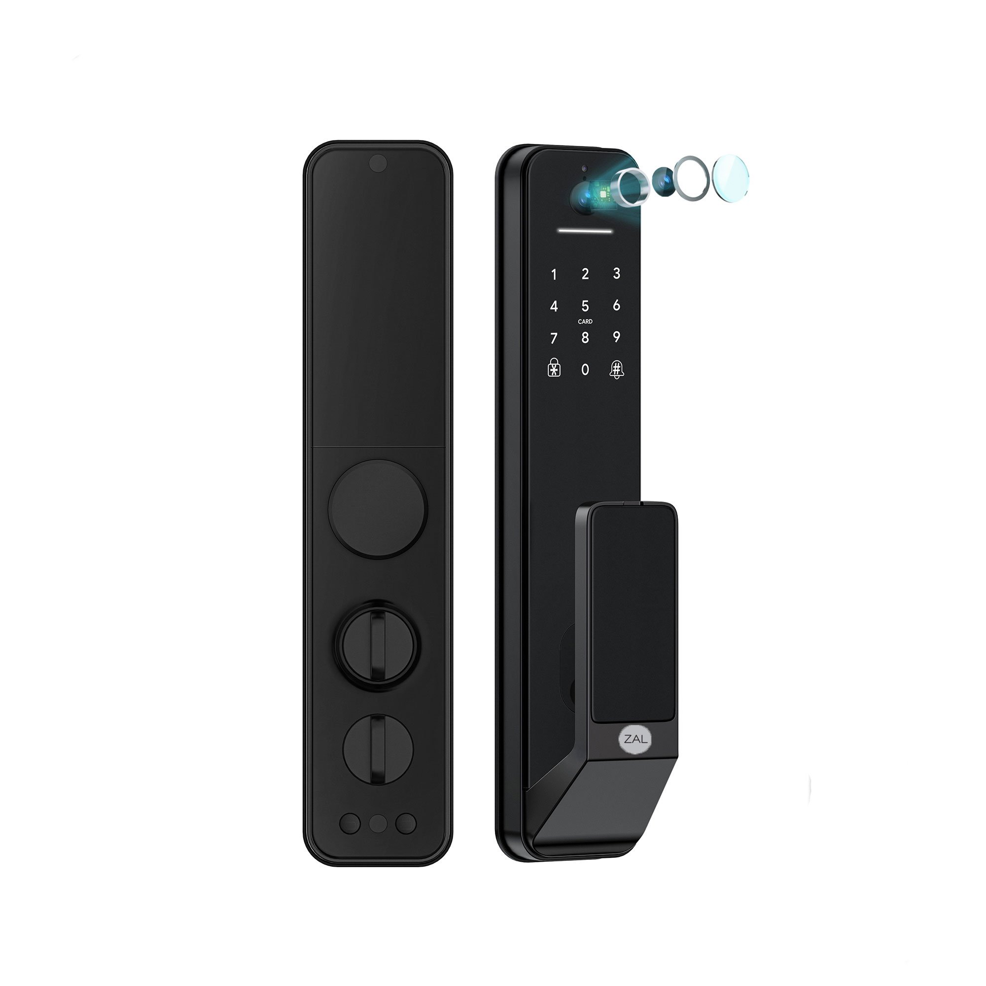 القفل الذكي من زال, يركب على ابواب الحديد و الخشب, داخلي و خارجي, مصمم بشكل عصري ومناسب لجيمع الاذواق, بصمة, بطاقة, رقم سري, تحكم جوال, كاميرا ربط على الجوال, مفتاح للطوارئ