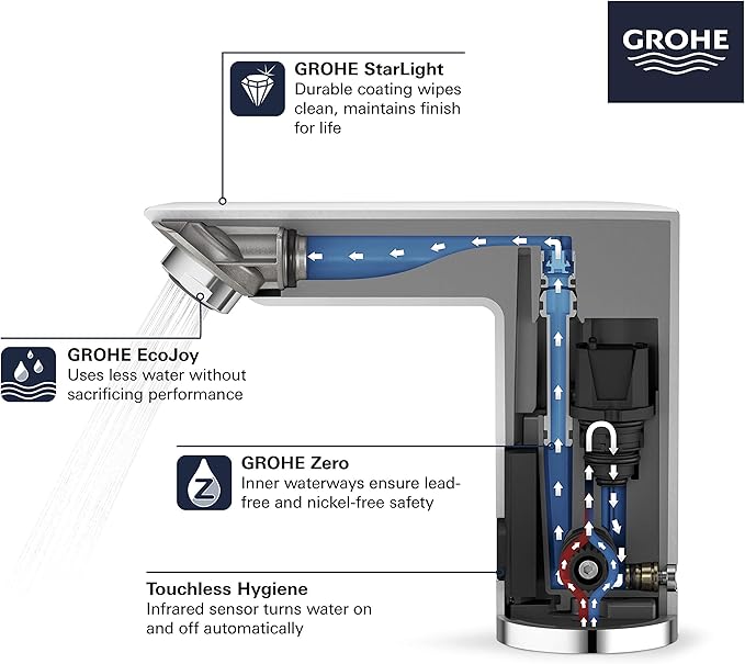 يتميز GROHE Zero بممرات مائية داخلية آمنة لضمان سلامة المياه الخالية من الرصاص والنيكل