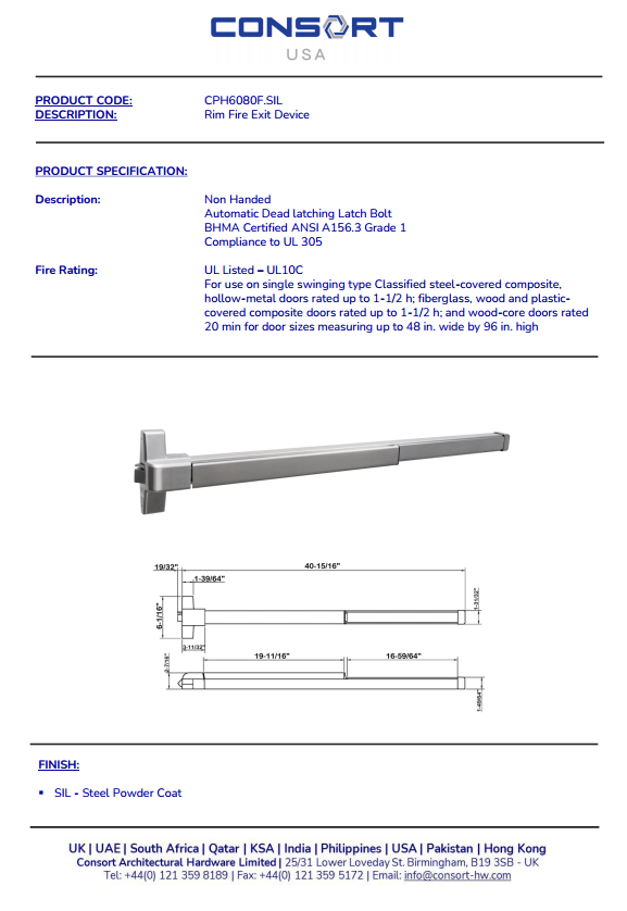 قفل باب طوارئ CONSORT CPH6080F SSS