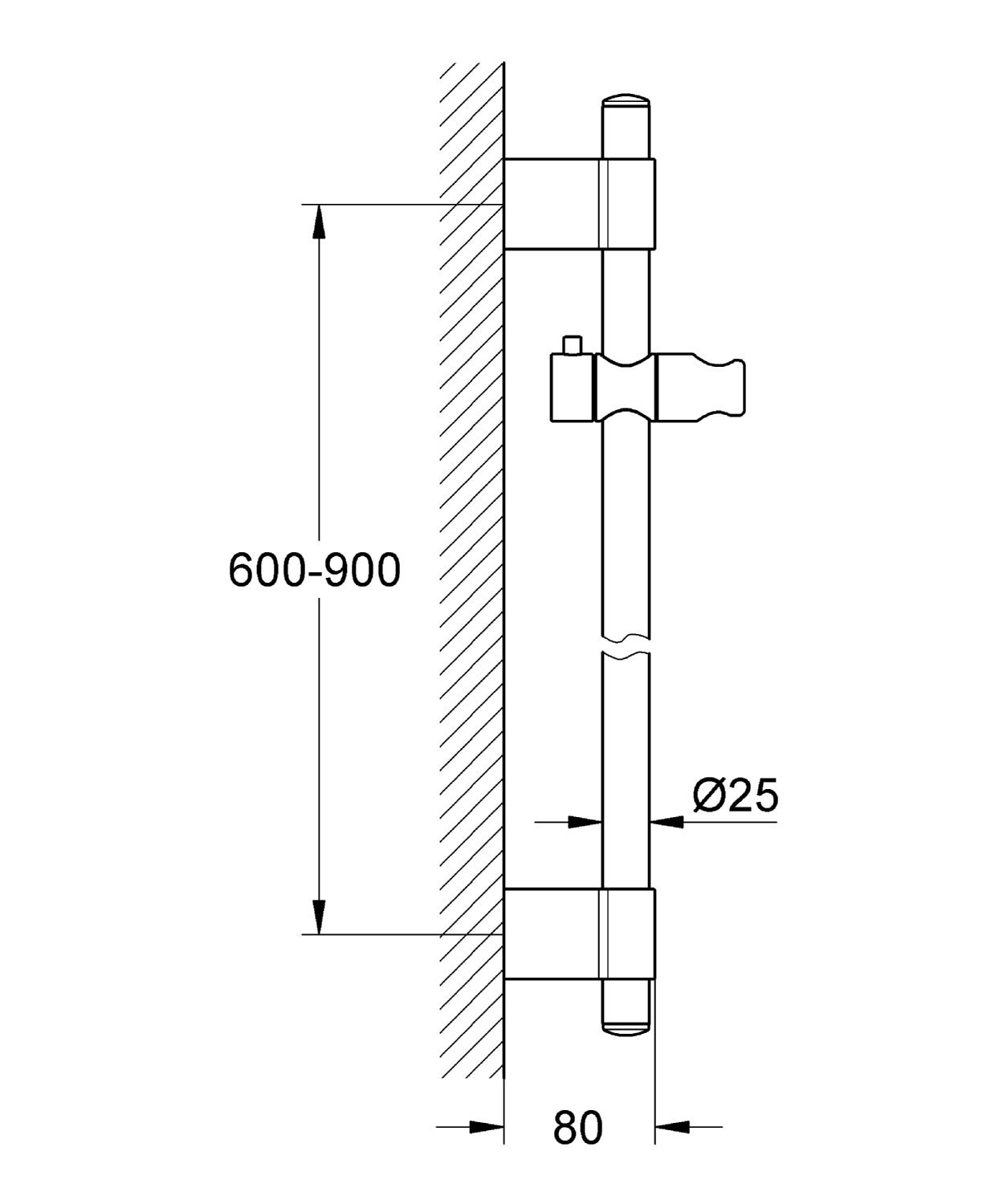 (مسافة قابلة للتعديل بين حوامل الدش الجدارية للتكيف مع الحفر الحالي)