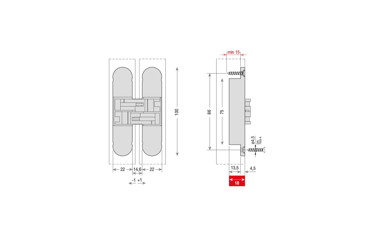 • اطالوی پوشیدہ دروازے کے قلابے